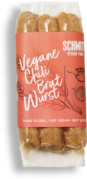 Du liebst es feurig und mit viel Geschmack? Dann klopf‘ Dir den Staub von den Stiefeln und hau‘ Dir diese Wurst in die Pfanne. Wie immer hergestellt nach unserer 100-0-100 Formel. 100% Handarbeit, 0% Fleisch, 100 % Geschmack und natürlich Handmade HH St. Pauli . Probier‘ doch mal Folgendes: SCHMITT Vegane Chili Bratwurst mit Chipotle-Gemüse, Spicy Wedges & Salsa. Rezept dazu? Einfach per E-Mail bei uns anfordern.