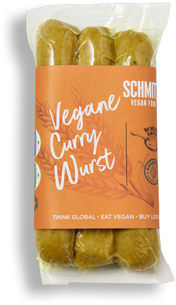 Friede, Freude, Currywurst. Ideal für die Fritteuse, die Pfanne oder auf dem Grill in der Grillschale. Und das alles nach unserer 100-0-100 Formel. 100% Handarbeit, 0% Fleisch, 100 % Geschmack. Probier‘ doch mal Folgendes: SCHMITT Vegane Currywurst mit Spicy Ofengemüse und Tomatensugo. Rezept dazu? Einfach per E-Mail bei uns anfordern.