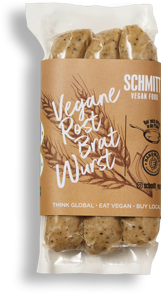 Der Klassiker unter den Bratwürsten. Ob zum Frühstück in der Schanze, zum Mittag in Kiel oder beim Grillen in Lübeck, mit Pommes oder mit Pommes: Sie schmeckt! Hau‘ Sie Dir in die Pfanne oder direkt aus der Fritte. Und das alles nach unserer 100-0-100 Formel. 100% Handarbeit, 0% Fleisch, 100 % Geschmack. Wie immer Handmade HH St. Pauli . Probier‘ doch mal Folgendes: SCHMITT Vegane Rostbratwurst mit Pommes & veganer Mayonnaise. Rezept dazu? Einfach per E-Mail bei uns anfordern.